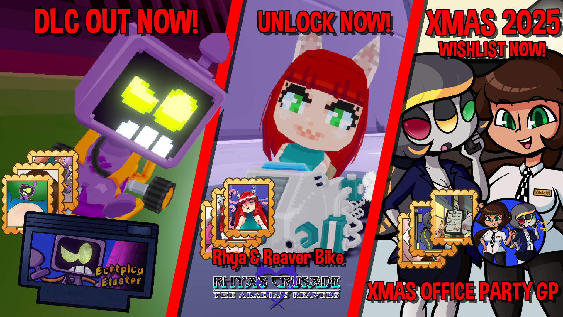 Also we launched Butt Plug Blaster as a new DLC character, Rhya of Rhya’s Crusade as a free unlock and announced our Xmas DLC for the Xmas Office Party GP!