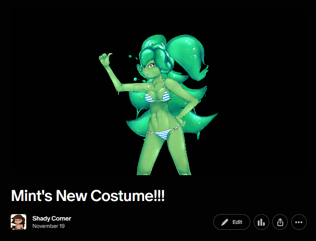 https://www.patreon.com/posts/mints-new-143895685 This week we may show the nude version if your really good~
