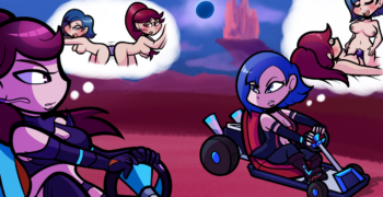 Powerslide around crazy tracks from ghost houses, speedways and even some of your favorite lewd games. Pick up as many dating items as you can and present them to the ‘Pitgirls’.