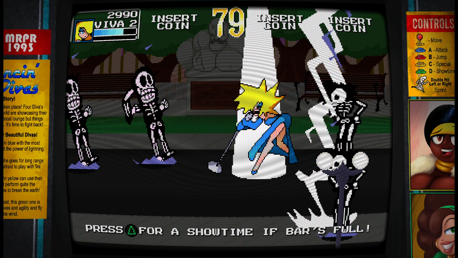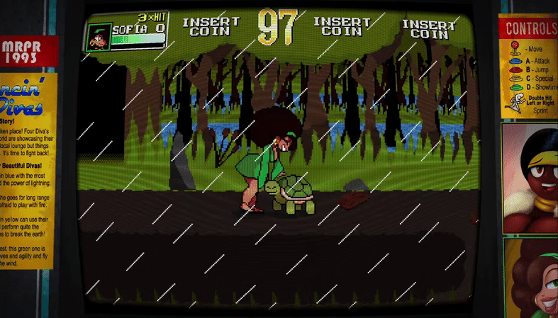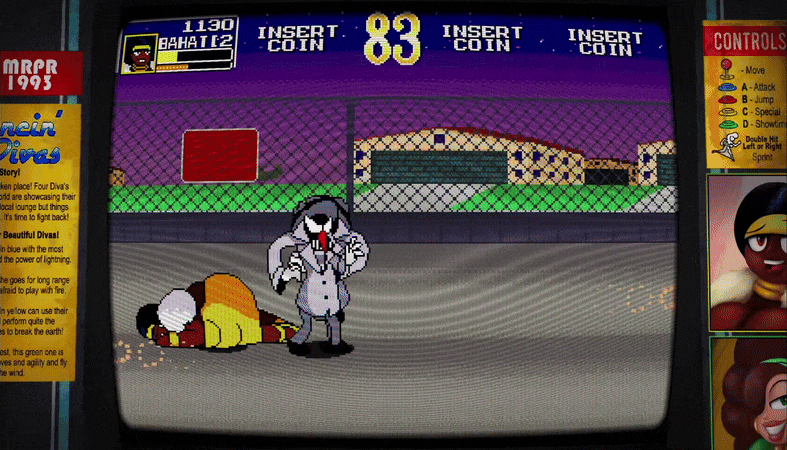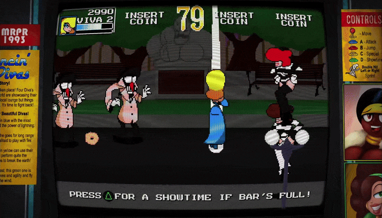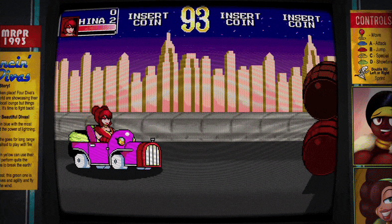 Classic arcade side scrolling beat em up with some sexy character design and radical gameplay! For players who love to button mash and those out to get combos, Dancin Diva’s is a love letter to games like Konami’s Simpsons Arcade and Streets of Rage.